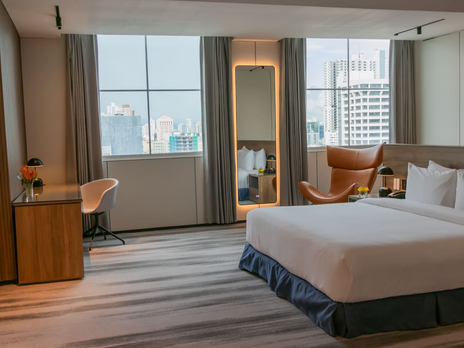Mejora tu estadía en nuestra habitación Deluxe King, que ofrece una extraordinaria vista a la ciudad en el corazón del distrito financiero de Panamá.